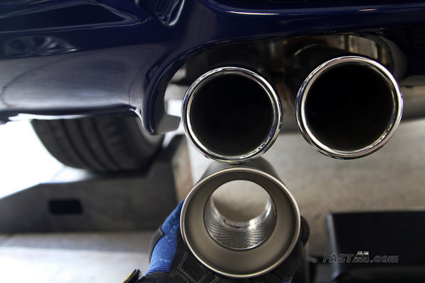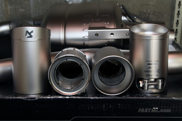 Install Pictures Titanium Exhaust Tips Compared to Stock Tips Before: Stock Exhaust Akrapovic Left, Stock Left After: Akrapovic Exhaust Mated to OEM Cross Pipes Akrapovic Logo Peeking Out Video below was to capture first start-up after install. Not meant to show actual exhaust sound. |