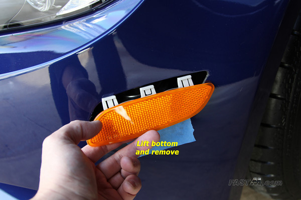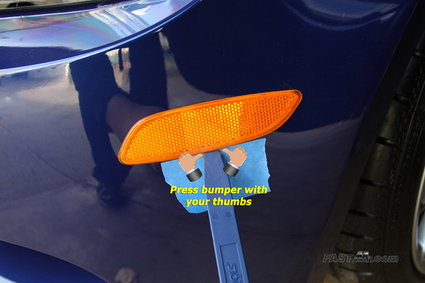 Installation Step 1. Press bumper with your thumbs Using both thumbs, press the bumper directly below the reflector. The bumper should press in fairly easily and you should hear a small pop around the middle of the reflector. Step 2. Remove the reflector IMPORTANT: Be careful not to drop the reflector inside the bumper!! Using your fingers, you can easily grab the reflector from the bottom and lift it upwards then remove it from the bumper. Step 3. Install new painted reflector and enjoy the new look IMPORTANT: Again, be careful, do not drop the new reflector inside the bumper!! First insert the top part of the new reflector then press the bottom of the reflector in till it's flush with the bumper. |