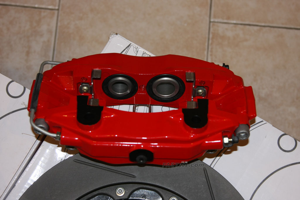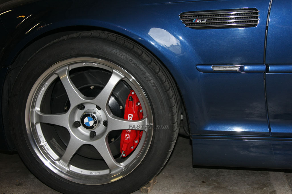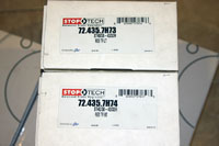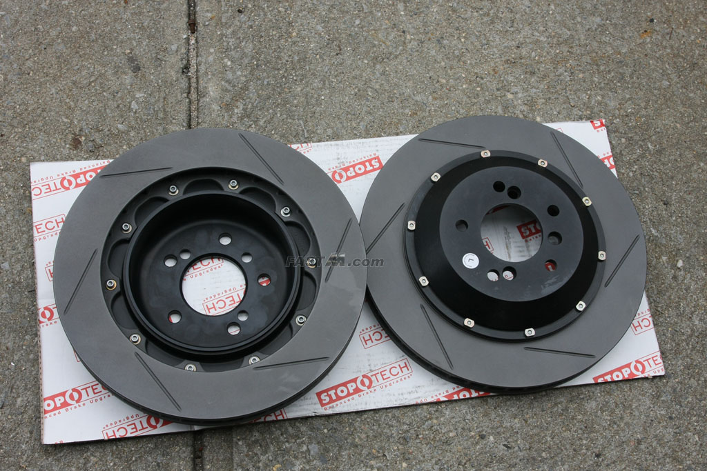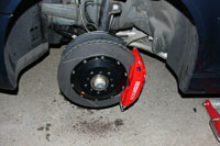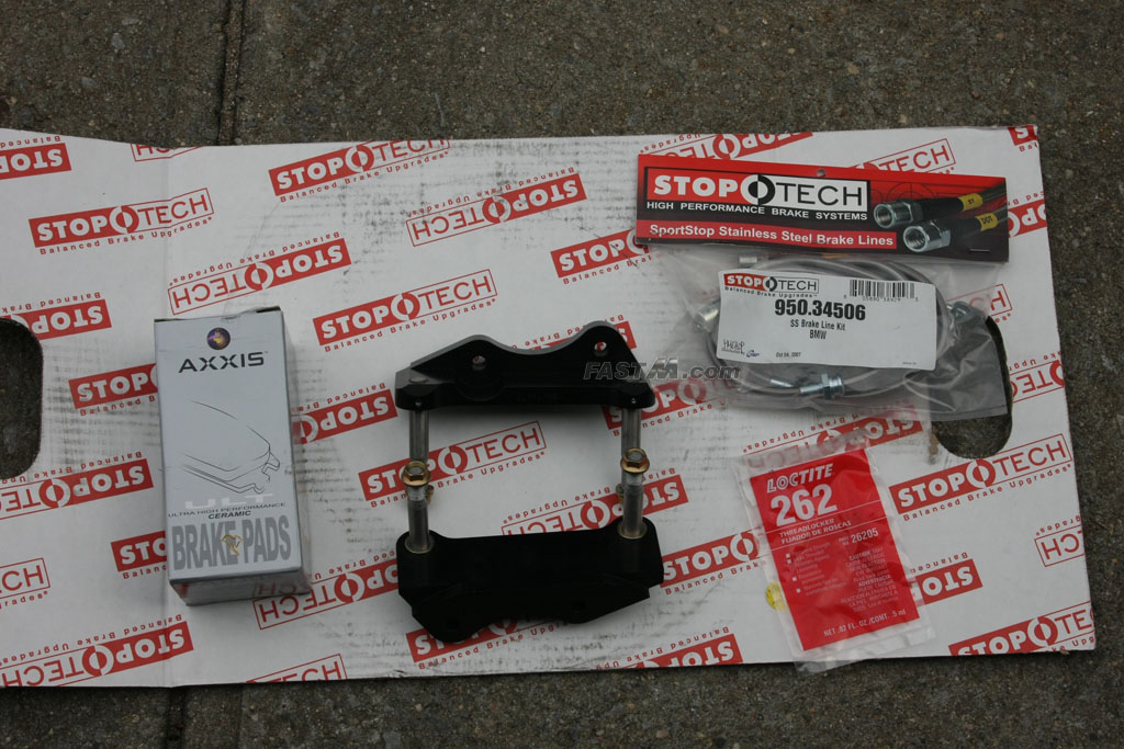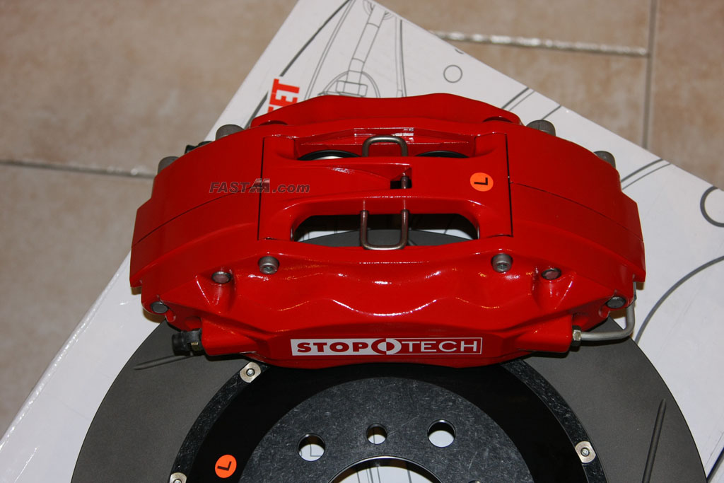 Installation Install Time: (anywhere from 3-4 hours if you take your time.)NOTE: A detailed guide is included with the StopTech kit can you can download the pdf version direction from StopTech.com. Thus I will not try to rewrite their excellent instructions. :) Click On An Image To See a Larger Image Front StopTech Brake Kit Installed Rear StopTech Brake Kit Installed |